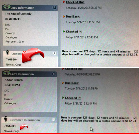 Old Bank has resorted to Facebook to get Cage's attention (they say they can't get a hold of him) posting ..."If anyone happens to run into Nicolas Cage wandering the neighborhood, please kindly remind him he's had [our DVD's] for a few months."